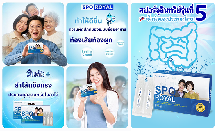 ในประเทศไทย,มีปัญหาทางเดินอาหารเริ่มมีมากขึ้นเรื่อยๆ ซึ่งส่งผลต่อคุณภาพ และ วิถีการดำเนินชีวิตของพวกเรา มี อาการปวดท้อง, ท้องเสีย, ท้องผูก ,อาการลำไส้แปรปรวน และ ปัญหาลำไส้ใหญ่อักเสบไม่เพียงแต่ทำให้ผู้ป่วยรู้สึกไม่สบายเท่านั้น แต่ยังนำไปสู่ปัญหาที่เป็นอันตรายอื่นๆ อีกมากมาย .วิธีที่มีประสิทธิภาพในการสนับสนุนระบบย่อยอาหารคือการผสมผสานการเปลี่ยนแปลงพฤติกรรมการกินและการใช้ชีวิตเข้ากับการเสริมสปอร์โปรไบโอติก SPO ROYAL ผลิตภัณฑ์นี้ช่วยฆ่าเชื้อแบคทีเรียที่เป็นอันตราย และ ปรับสมดุลจุลินทรีย์ในลำไส้ ปรับปรุงระบบย่อยอาหาร. อยากให้เรียนรู้เกี่ยวกับส่วนผสมของผลิตภัณฑ์, การใช้งาน และคุณประโยชน์ที่ผลิตภัณฑ์ สินค้า SPO ROYAL !